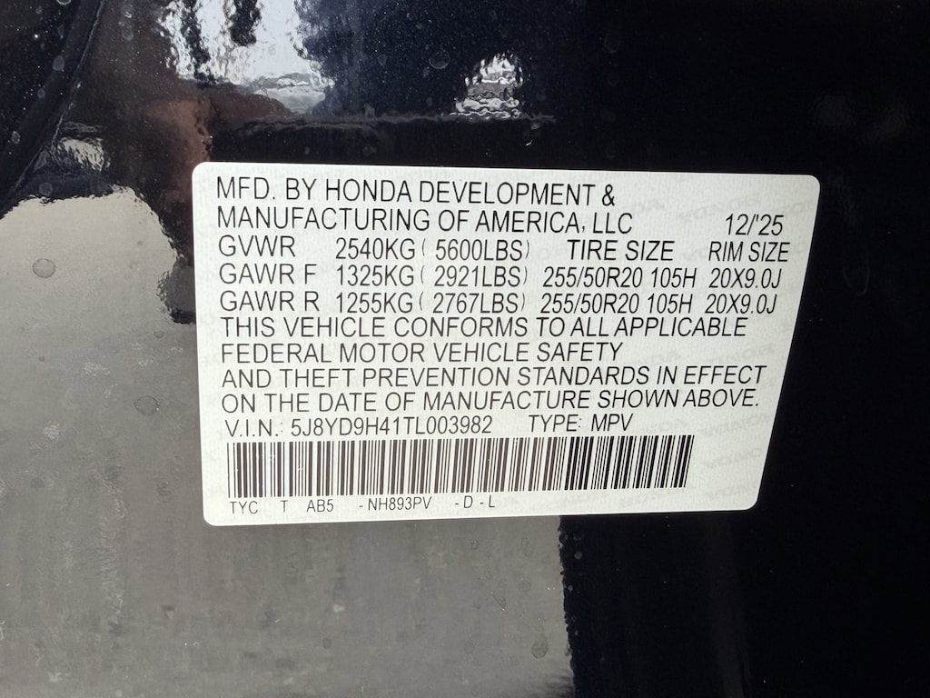 - Front tires: 255/50HR20.0