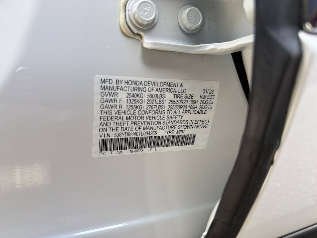- Front tires: 255/50HR20.0