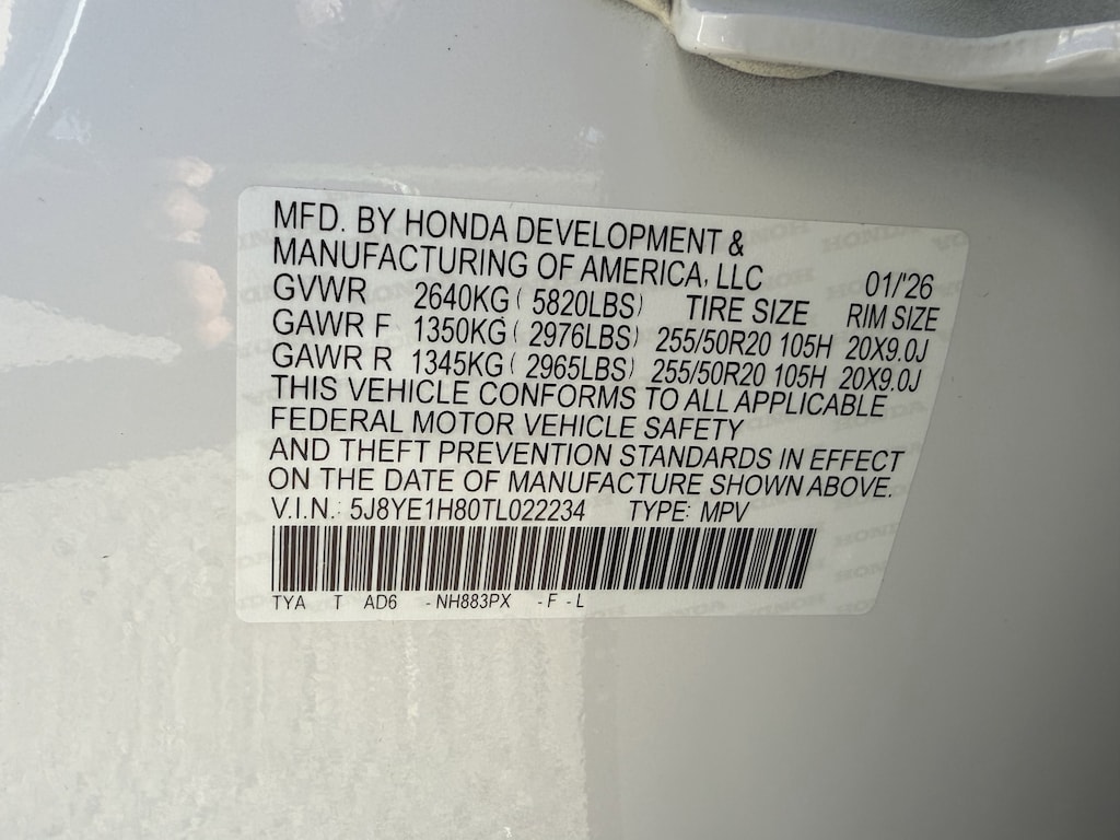 - Front tires: 255/50HR20.0