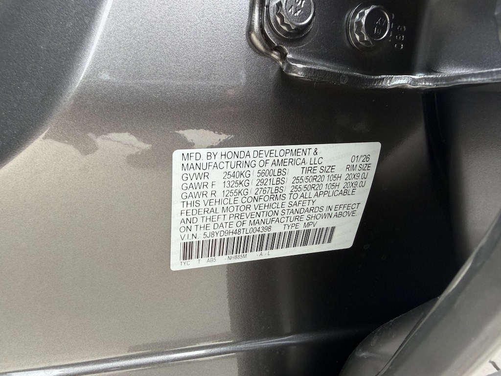 - Front tires: 255/50HR20.0