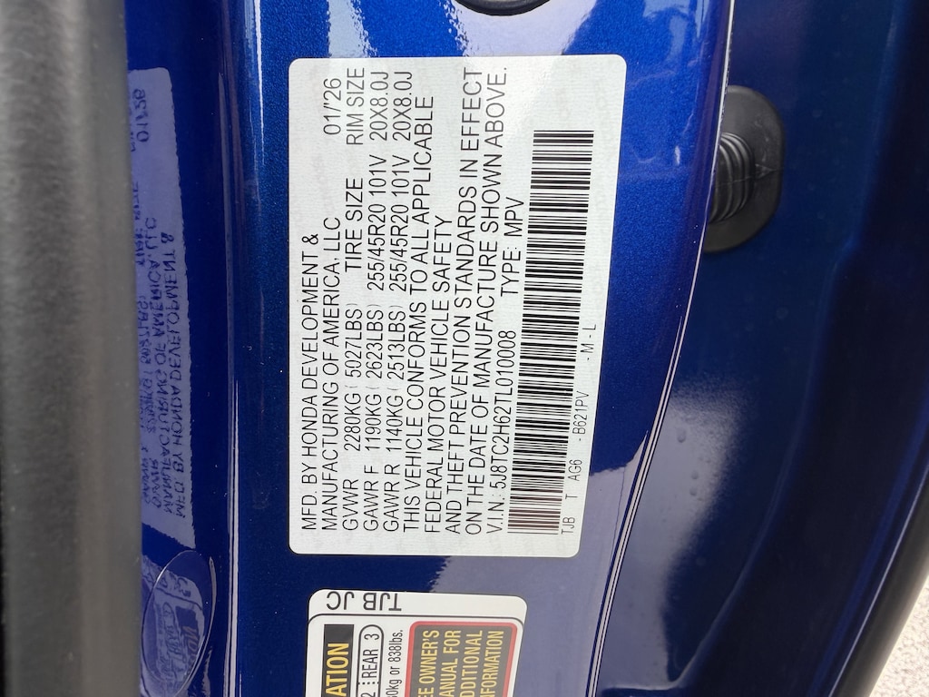 - Front tires: 255/45VR20.0