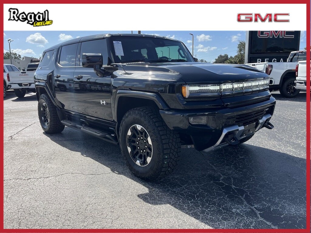 UNDERBODY CAMERAS forward and rearward facing with washers and lens protectors, VOID BLACK, LPO ROCKER PROTECTORS WITH ASSIST STEPS (dealer-installed), 3X PREFERRED EQUIPMENT GROUP includes standard equipment, FRONT DRIVE UNIT 1-MOTOR INTEGRATED INVERTER PARK SYSTEM LOCKING DIFFERENTIAL., ENGINE NONE (ELECTRIC MOTORS) (STD), LICENSE PLATE KIT FRONT, LPO REAR D-RING RECOVERY HOOK IN BLACK ARTICULATING D-RING FRAME MOUNTED (dealer-installed), TIRES LT305/70R18 GOODYEAR WRANGLER TERRITORY MT, TIRE SPARE LT305/70R18-126/123R 35" M/T, REAR DIFFERENTIAL DRIVER-SELECTABLE ELECTRONICALLY LOCKING, LUNAR SHADOW (JET BLACK/TAUPE) PREMIUM LEATHER-ALTERNATIVE SEATING SURFACES, SEATS FRONT BUCKET WITH CENTER CONSOLE PREMIUM (STD), WHEELS 18" X 9" BLACK ALUMINUM with machined accents, AUDIO SYSTEM 13.4" DIAGONAL PREMIUM GMC INFOTAINMENT SYSTEM WITH GOOGLE BUILT IN APPS SUCH AS NAVIGATION AND VOICE ASSISTANCE includes color touch-screen multi-touch display AM/FM stereo Bluetooth streaming audio for music and most phones; featuring wireless Android Auto and Apple CarPlay capability for compatible phones (STD), WHEEL SPARE 18" X 9" BLACK ALUMINUM WITH MACHINED ACCENTS, FRONT DIFFERENTIAL DRIVER-SELECTABLE ELECTRONICALLY LOCKING, EXTREME OFF-ROAD PACKAGE includes (QNB) Wheels spare 18" by 9" Black aluminum with machined accents (RCS) 18" Black aluminum wheels with machined accents (QMG) LT305/70R18 Goodyear Wrangler Territory MT tires (NZZ) Full Underbody Skid Plates (G93) Driver-selectable electronically locking front differential (G94) Driver-selectable electronically locking rear differential (UXA) Forward and Rearward underbody cameras (SDA) Black Rear D-Ring Recovery Hook (dealer-installed) and (S6L) Rocker Protectors with Assist Steps (dealer-installed), SKID PLATES FULL UNDERBODY, TRANSMISSION NONE (ELECTRIC DRIVE UNIT) (STD), Electric Motor, Keyless Start, Four Wheel Drive, Electric Motor, Nickel Cobalt Manganese Traction Battery, Tow Hitch, Back-Up Camera, Back-Up Camera, Tow Hooks, Active Suspension, Air Suspension, Power Steering, All Wheel Steering, 4-Wheel Disc Brakes, Aluminum Wheels, Tires - Front Performance, Tires - Rear Performance, Conventional Spare Tire, Sun/Moonroof, Generic Sun/Moonroof, Panoramic Roof, Running Boards/Side Steps, Daytime Running Lights, Automatic Highbeams, Heated Mirrors, Power Mirror(s), Auto-Dimming Rearview Mirror, Power Folding Mirrors, Intermittent Wipers, Variable Speed Intermittent Wipers, Rain Sensing Wipers, Power Windows, Sliding Rear Window, Privacy Glass, Remote Trunk Release, Power Liftgate, AM/FM Stereo, Navigation System, MP3 Capability, Bluetooth Connection, Auxiliary Audio Input, Smart Device Integration, Premium Sound System, Satellite Radio, Requires Subscription, WiFi Hotspot, Steering Wheel Audio Controls, Bluetooth Connection, Smart Device Integration, Bucket Seats, Premium Synthetic Seats, Heated Front Seat(s), Heated Front Seat(s), Cooled Front Seat(s), Power Driver Seat, Driver Adjustable Lumbar, Power Passenger Seat, Passenger Adjustable Lumbar, Mirror Memory, Seat Memory, Heated Rear Seat(s), Pass-Through Rear Seat, Rear Bench Seat, MP3 Capability, Auxiliary Audio Input, Floor Mats, Floor Mats, Floor Mats, Heated Steering Wheel, Adjustable Steering Wheel, Power Windows, Power Door Locks, Keyless Entry, Power Door Locks, Keyless Start, Remote Engine Start, Universal Garage Door Opener, Cruise Control, Adaptive Cruise Control, Cruise Control, Telematics, Lane Departure Warning, Lane Keeping Assist, Adaptive Cruise Control, Requires Subscription, Cruise Control Steering Assist, Driver Monitoring, Security System, Security System, MP3 Capability, Auxiliary Audio Input, Climate Control, Multi-Zone A/C, A/C, Rear A/C, A/C, Rear A/C, Rear Defrost, Auto-Dimming Rearview Mirror, Back-Up Camera, Brake Assist, Front Collision Mitigation, Front Collision Warning, Rear Collision Mitigation, Front Collision Mitigation, Traction Control, Stability Control, Driver Air Bag, Passenger Air Bag, Front Side Air Bag, Rear Side Air Bag, Passenger Air Bag Sensor, Telematics, Requires Subscription, Aerial View Display System, Blind Spot Monitor, Passenger Air Bag Sensor, Child Safety Locks, Driver Restriction Features, Tire Pressure Monitor, Cross-Traffic Alert, Rear Parking Aid, Automatic Parking, Front Collision Warning, Cruise Control, Telematics, Lane Departure Warning, Lane Keeping Assist, Adaptive Cruise Control, Requires Subscription, Cruise Control Steering Assist, Driver Monitoring, Navigation System, Telematics, Requires SubscriptionRegal Automotive Group is family owned and operated. We have been serving the Lakeland, Winter Haven, Brandon, Tampa and Orlando areas for over 48 years, supporting many local charities and community activities. Regal has a vast selection of new/used vehicles for you to choose from!