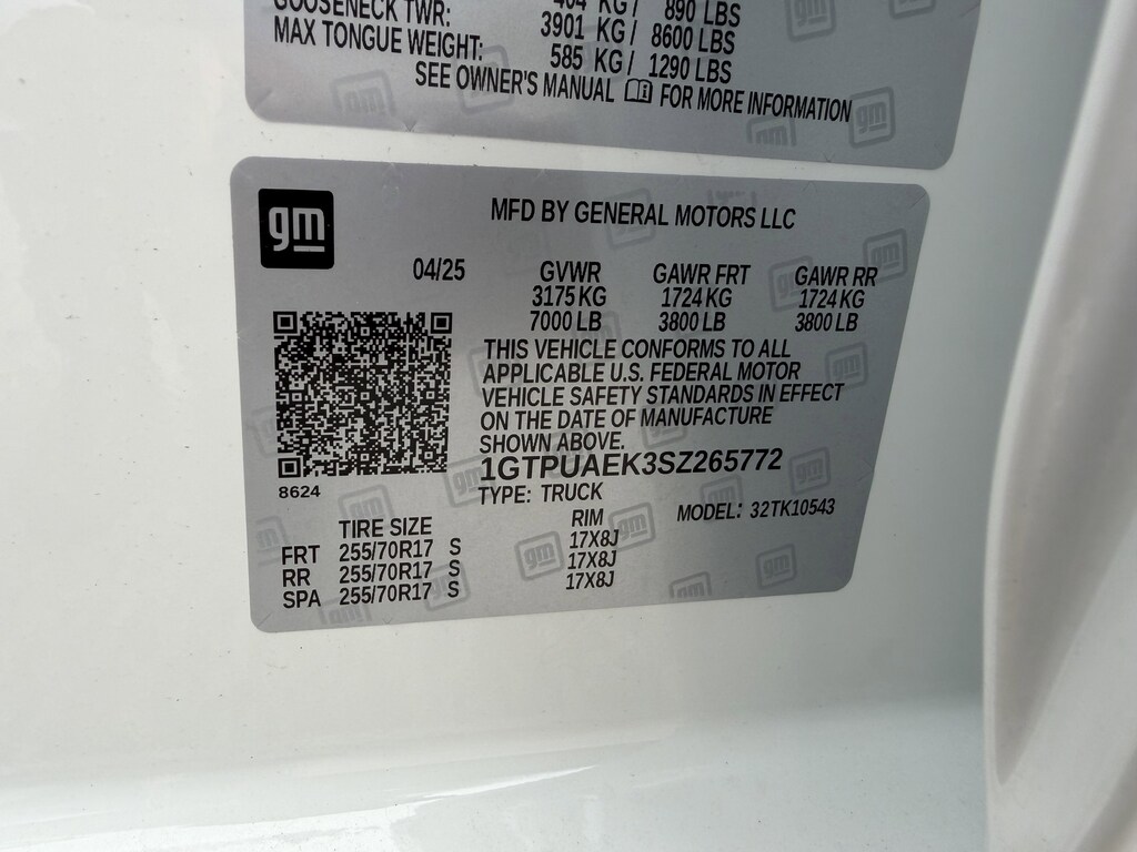 - Front tires: 255/70SR17.0