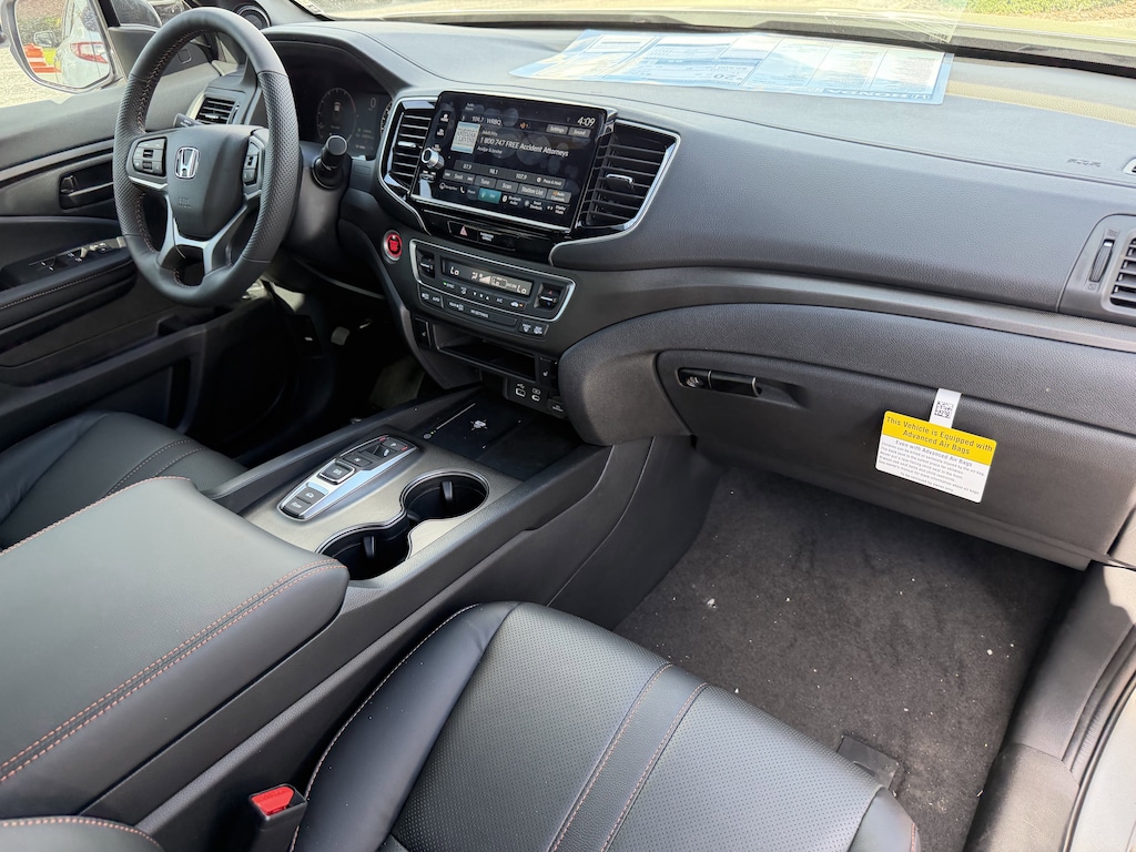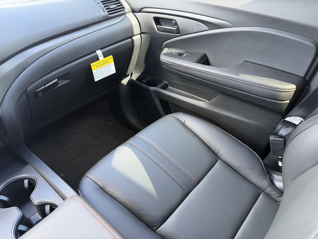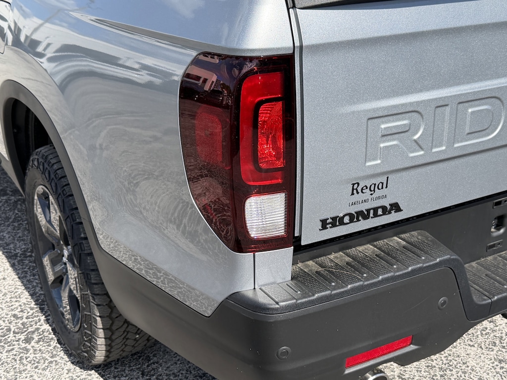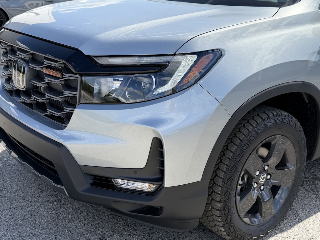 The Ridgeline TrailSport's exterior is dressed in a sleek Silver finish, complemented by a host of rugged and premium features, including fog lights, power-folding side mirrors, and a rear step bumper for easy access to the truck bed. Step inside and you'll be greeted by a well-appointed cabin with leather-trimmed seating, a heated steering wheel, and dual-zone automatic climate control, ensuring your comfort no matter the weather.