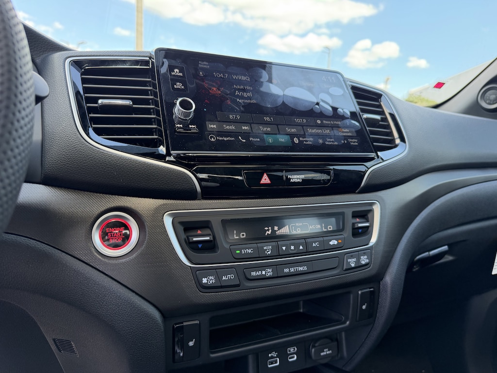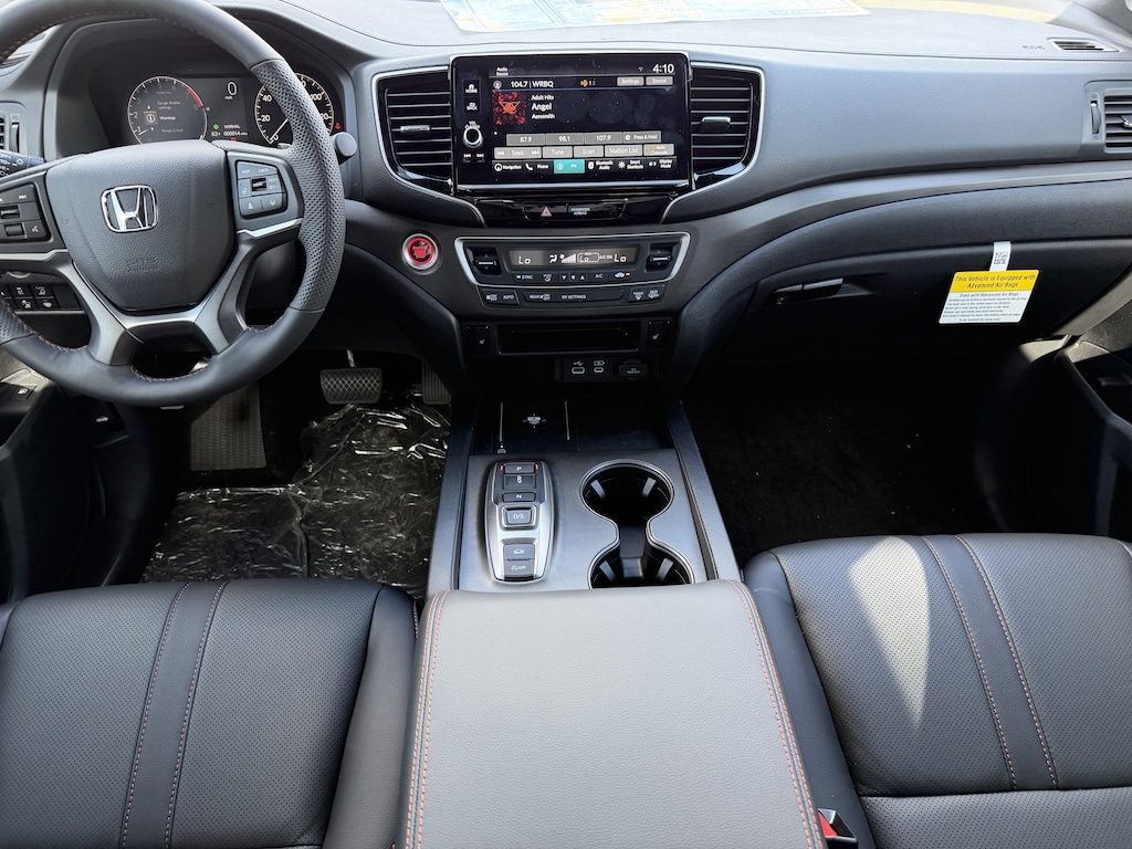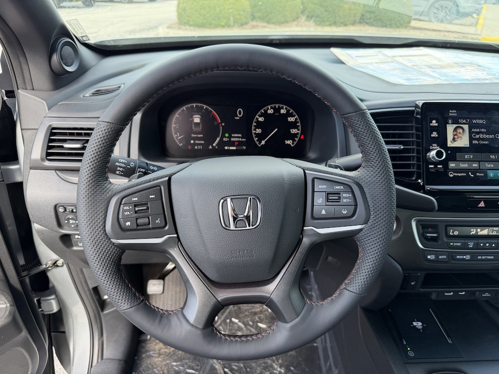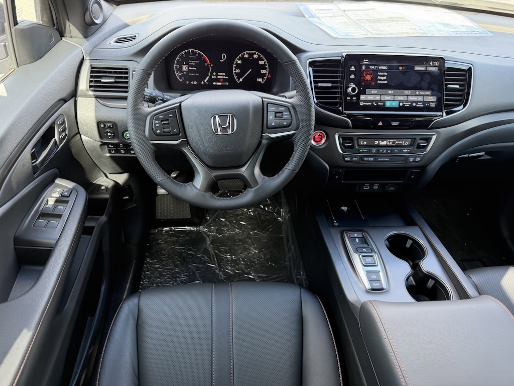 The Ridgeline TrailSport's exterior is dressed in a sleek Silver finish, complemented by a host of rugged and premium features, including fog lights, power-folding side mirrors, and a rear step bumper for easy access to the truck bed. Step inside and you'll be greeted by a well-appointed cabin with leather-trimmed seating, a heated steering wheel, and dual-zone automatic climate control, ensuring your comfort no matter the weather.