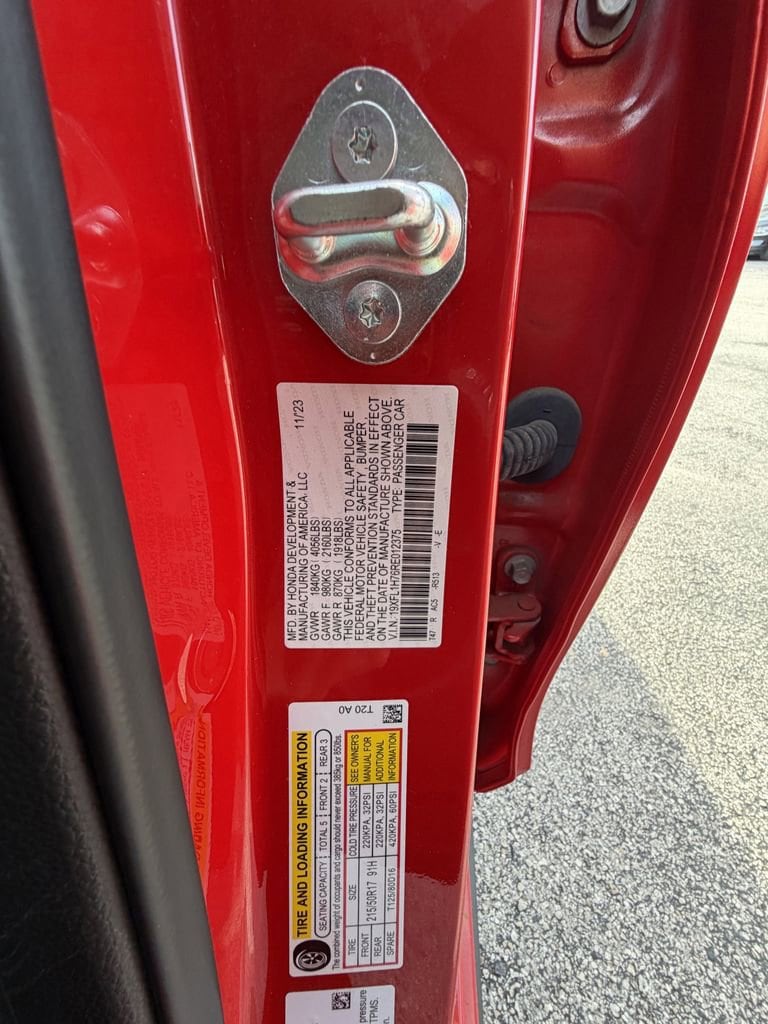 2024 Honda Civic EX-L Rallye Red FWD CVT 1.5L I4 DOHC 16V